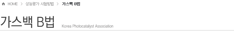 시험가스를 광촉매 제품이 들어있는 가스백에 주입하고 자외선을 조사하여 광촉매에 의한 시험가스의 분해정도를 확인한다.
