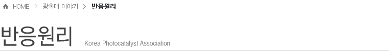 반응원리 광합성 작용이 엽록소를 촉매로 산소를 발생시켜 숲의 정화작용을 하듯이 광촉매는 촉매작용이 빛을 흡수함으로서 일어나는 것을 말한다. 반도체는 일정한 영역의 에너지가 가해지면 전자가 가전자대에서 전도대로 여기 된다. 즉 전도대에는 전자들이 형성되게 되고 가전자대에는 정공이 형성하게 된다. 이렇게 형성된 전자와 정공은 각각 산화, 환원 반응에 참여하게 되고, 그 작용 에 의해 유해물질을 분해시키는 등 다양한 반응을 일으키게 된다.
